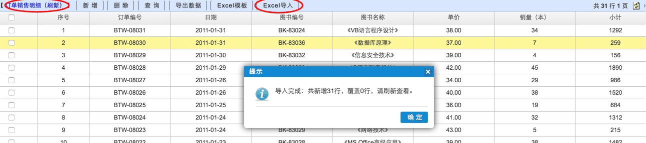 导入完成后,Excel表格就变成数据库里的数据了,同时在TSS数据表里有完整的定义,可以看到数据表创建了和Excel一样的字段列,以及一样的字段类型。通过数据表,从此数据采集录入、分析、分发等可在线完成,可以严格控制数据权限,可以走审批流程,可以上传附件资料等等。瞬间,你其实已经完成了两个软件系统功能模块的开发:销售数据管理 和 图书定价管理。当然也可以继续在Excel里维护数据,定时把数据依次导入到生成的数据表里。